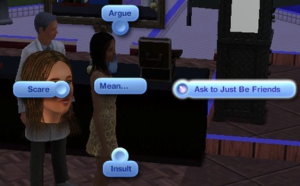 怖がらずにつき合ってくれるのは、同僚や Evil (悪い)の特質をもったシムだけ。