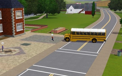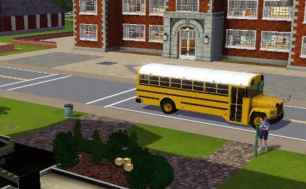 新しい家は学校の目の前。走ればすぐなのに、スクールバスがわざわざ迎えにきます。プログラムが決まってるので仕方ないんだけど、