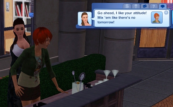 ( 本当は、MOD の NRaas_Register を使ってコントロールしています。今後もバーテンダーの移動は自分の判断で時々動かします。彼らの状況も、イメージにあわせてストーリーを作っていきます )