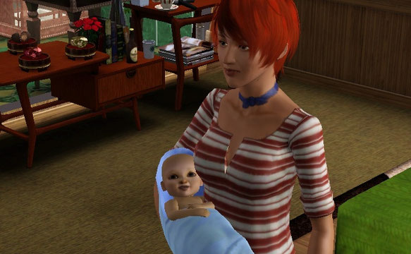 肌の色、これでいいのかな、なんか顔色悪い、不自然な色。たぶん、ママの遺伝子の影響です。スキンの都合で、調整が必要かも。