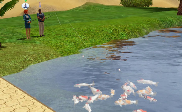 鯉がいっぱい。外国にこないと釣れない魚です。ねえ、鯉もいいんじゃない ?