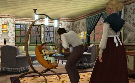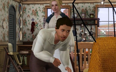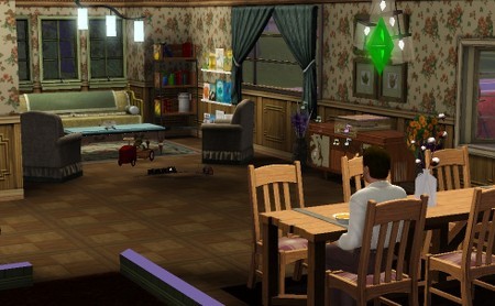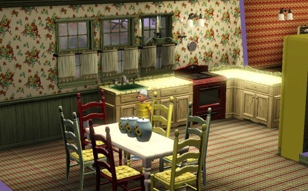 チートで飾った小物がじゃまをして、シムの動きにひっかかったようです。ごめんなさい。欲張りなレイアウト。