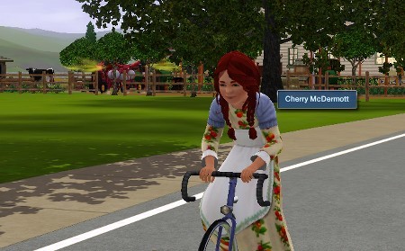 朝の光景。 Cherry が小学生になりました。自転車通学しています。その自転車、