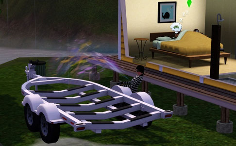 せっかくのボートハウスですが、住んでいるシムたちはいったん移動をお願いします。