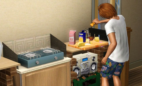 スペース節約で、台所のすきまにラジカセを置きました。これ、いいかんじ。