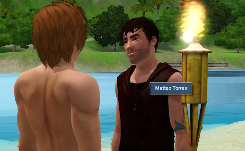 パラダイス島の住人、マッテオ・トーレス (Matteo Torres ) です。いいかんじのシムです。仲良くなりました。
