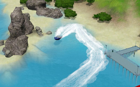 すごい急カーブ、大きな水しぶきをあげてモーターボートが暴走しています。