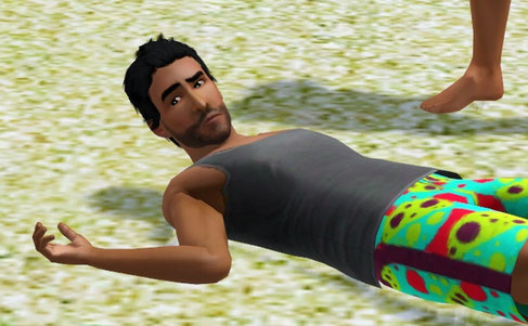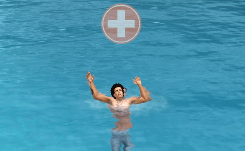 いた ! マシューがおぼれてる。ちゃんと泳げるでしょー。もう放っておこう。