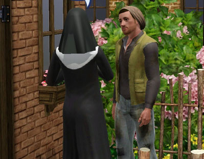 (カステムコンテンツの修道服を試着する目的で作ったオリジナルシムですが、イメージがわいてきたので、このままプレイを続けます )