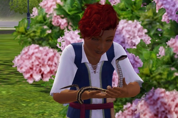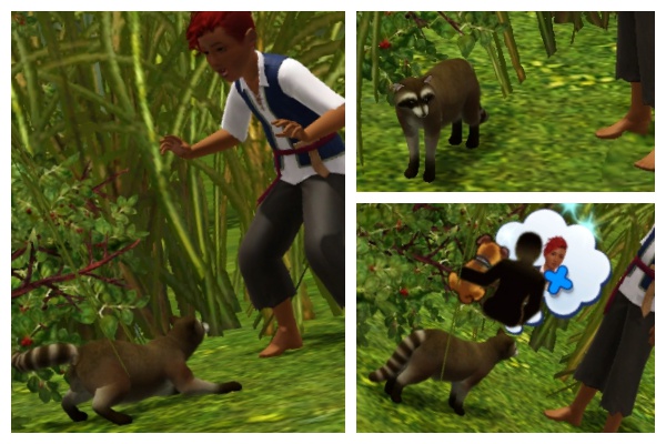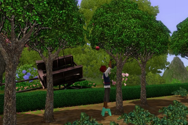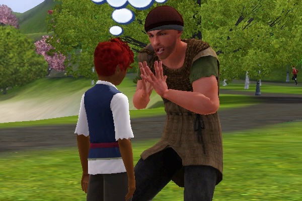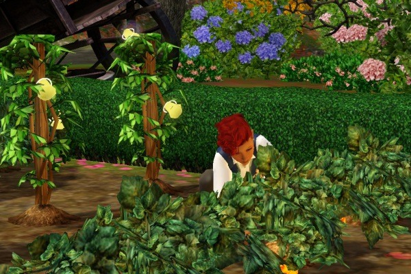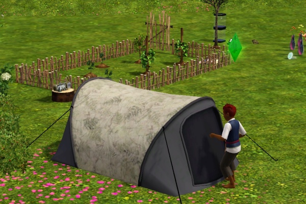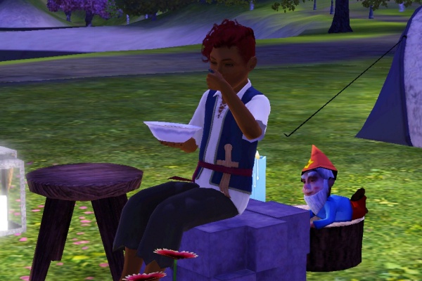 (デフォルトのゲームでは子供シムができない操作が多いため、今回だけ、ガーデニングや焚き火を可能にするチートを追加です)