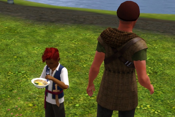 盗賊:「ほれよ。あとでお前のお宝と交換だぜ」 と、食料をわけてもらいました。ゲームなのに「食べ物に飢えそう」な気分だったので、ちょっとうれしかったです。 なぜかラーメンが出てきました。