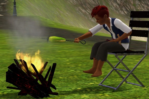 浜辺に設置したグリルで、大人のあんちゃんが料理を始めてくれないか期待したけど、フリーウィルでは反応なし。