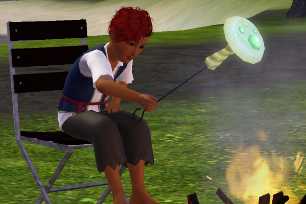 盗賊のあんちゃんも遊びにきて、焼きマシュマロを作っていました。
