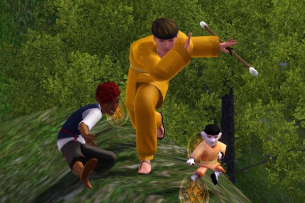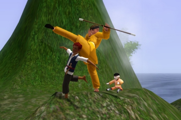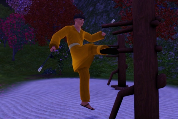深夜の誰もいない道場で、マーボが修行をしています。いろんなカンフーポーズをさせてみたい。