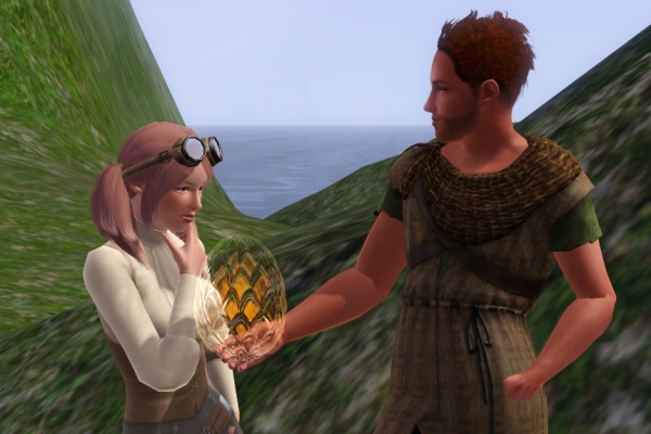 「ドラゴンエッグだよ。どうだい、珍しいだろう」「えーこれ本物 ? ガラス工房で同じもの売ってるわよ」