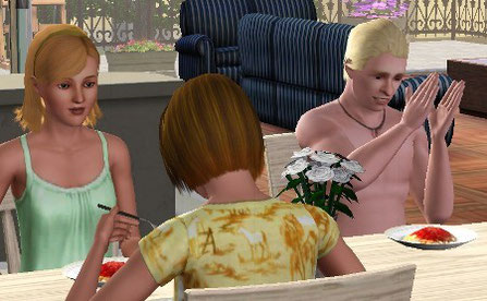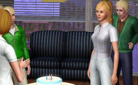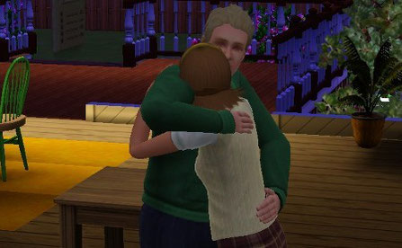 おめでとう〜 うしろで Ethan が同じポーズ。この光景、他のストーリーでも全く同じシーンがある。