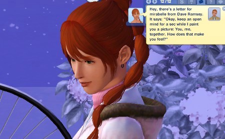 決め手はここ、Marty がささやいたセリフの吹き出し。普通ならハートやへんなウフフマークで、シムが何考えてるのか笑えることが多いのに、Marty はこの握手の絵。誠実さが出てスポーツ選手らしくさわやかに思えました。きっと彼は自分の気持ちに正直に行動してると思います。