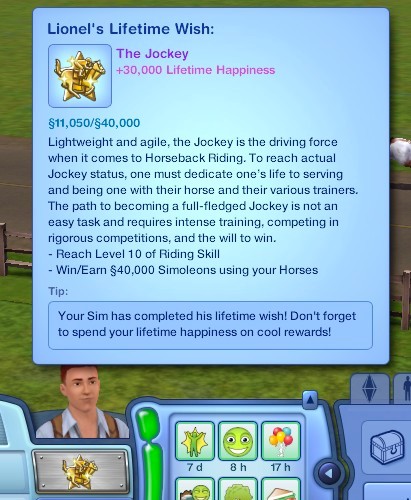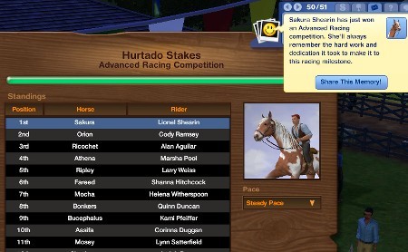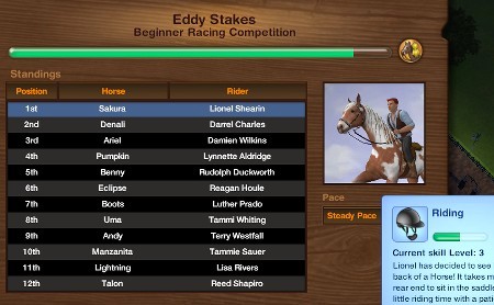 レースで賞金を稼ぐつもりでがんばってたのに、Riding スキルが 10 になったとたん、その場でファンファーレが鳴り出して。これだけでいいの?