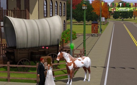 さあ結婚式です。いろいろ探したけど、ここにしました。意外かな。幌馬車があったから。