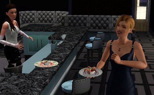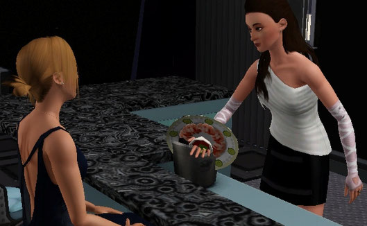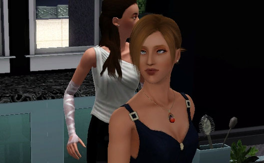 Tina の変顔と、彼女のドレスの背中のヒモのブラブラが気になったので、そんな会話にしてみました。