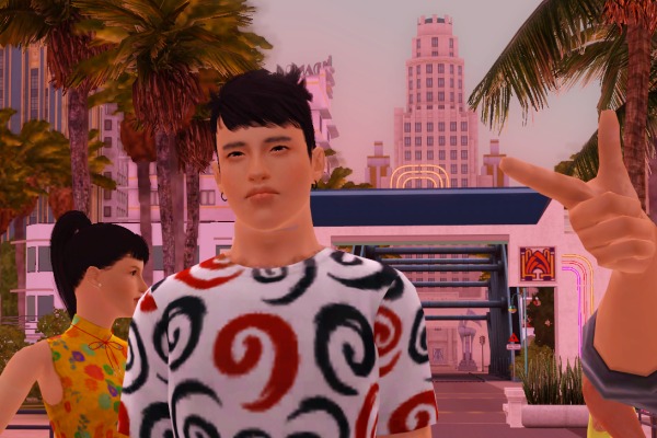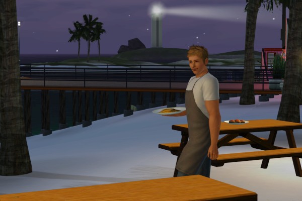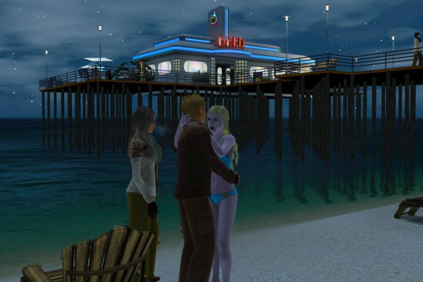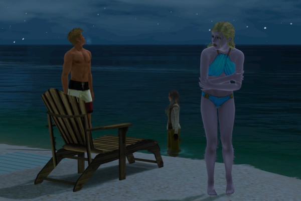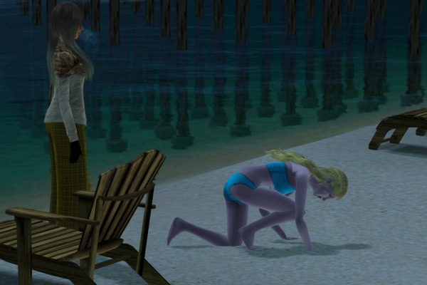 テラスから海に飛び込んだあのシムです。脱いで気分よく泳いでいたようでした。酔っていたのか正常じゃない行動で、あやうく命を落としそうに。