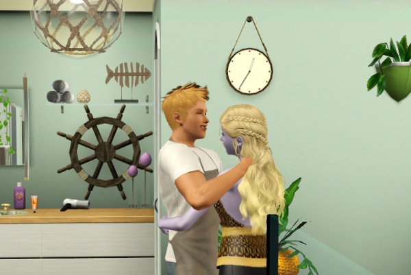 と、ここで、あやしげなシムが、海からでてきました。真っ青です。うわ、だれ、人魚かと思った。