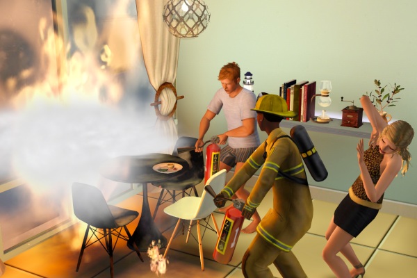 通報する余裕なかったけど、自動的に消防士もかけつけてくれました。燃え広がって鎮火に手間取ったけど、なんとか終了。