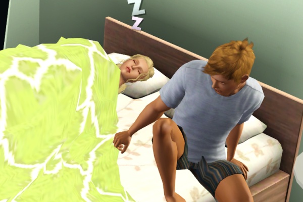 スヤスヤ、眠っている彼女の横で、そろりと入ってトニーも休みます。ベッドが一つしかないから、いいよね。一緒に寝かせて。