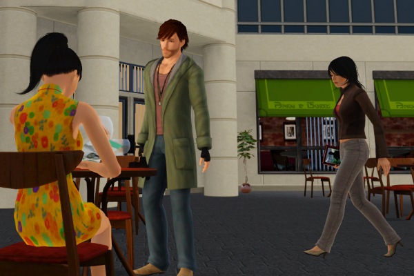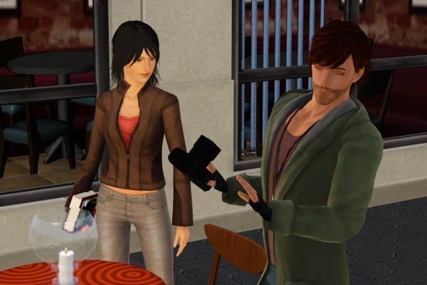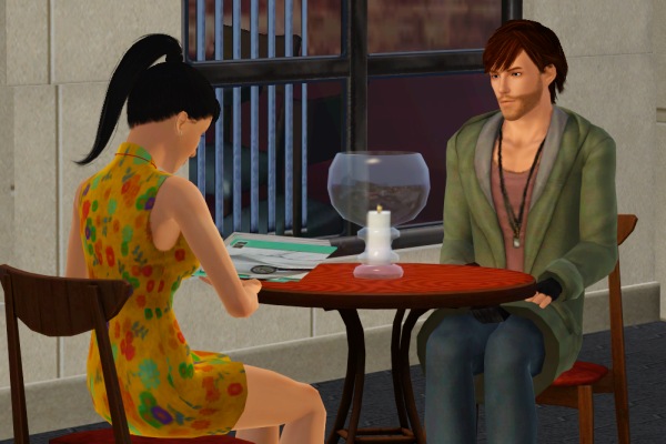 ザックがじーっと彼女を見ています。なんかあやしいな。