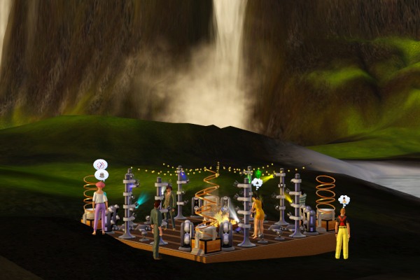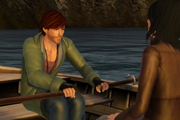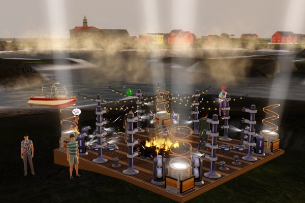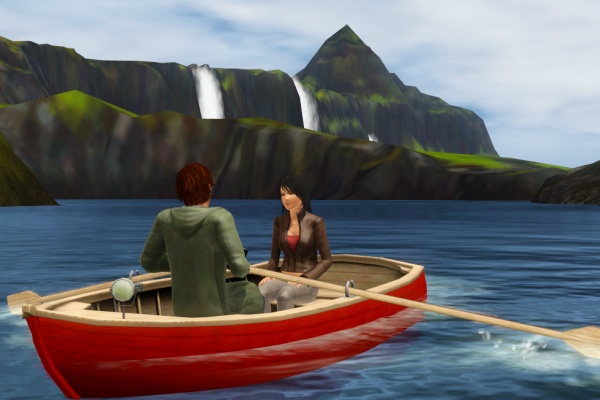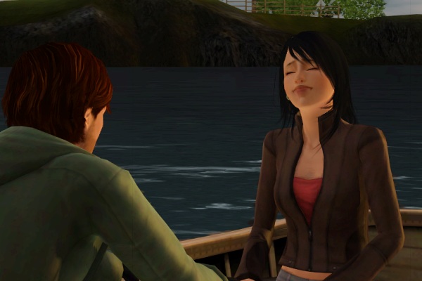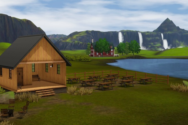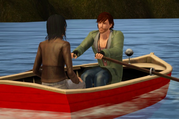 シムたちは火口湖までは行けないけど、ふもとの湖である場所へ移動中。