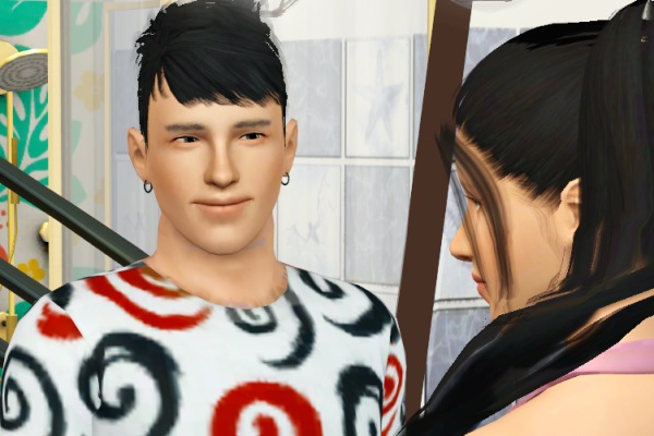 りりしいお顔でヘアスタイルが個性的。このキャラも初登場で新作のシムです。名前はアサヒくん。