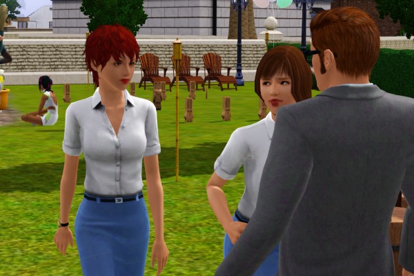 ヘアスタイルなら彼女たちも独特。お久しぶり、爆発ヘアのシムは大道芸の彼女。