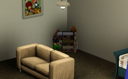 ここはお姉ちゃんの部屋でしょう、ひとり隅っこで人形と遊んでいます。お姉ちゃんといっても、ブレア (Blair Wainwright ) はとっくに成人して他の世帯で暮らしているので、一人っ子状態です。