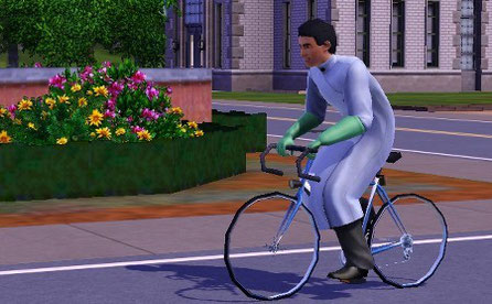 彼はエコ派なので、移動手段は自転車です。ドクターは夜中の緊急呼び出しが多いので、車でブーンと音をだすより、静かに自転車で病院に向かう方が、気が楽です。